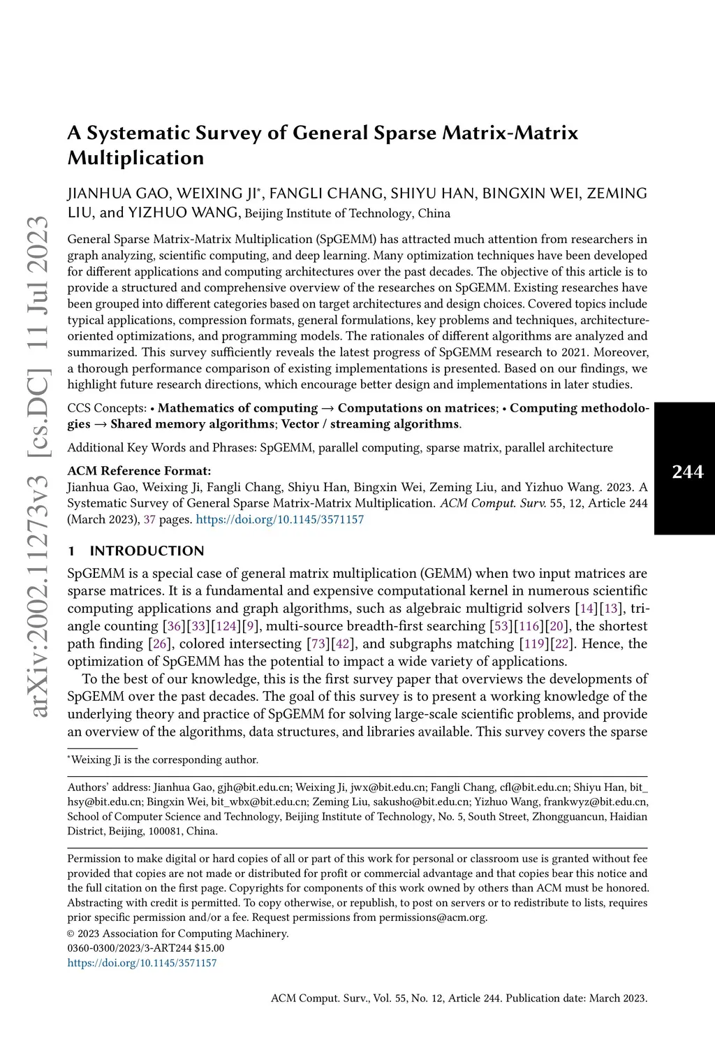 A Systematic Survey of General Sparse Matrix-Matrix Multiplication