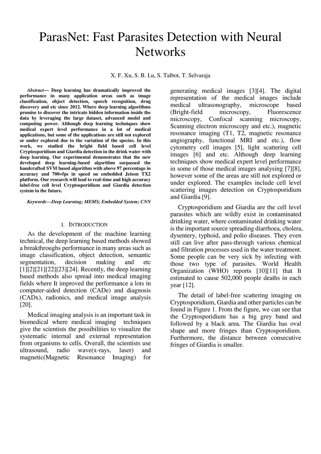 ParasNet: Fast Parasites Detection with Neural Networks