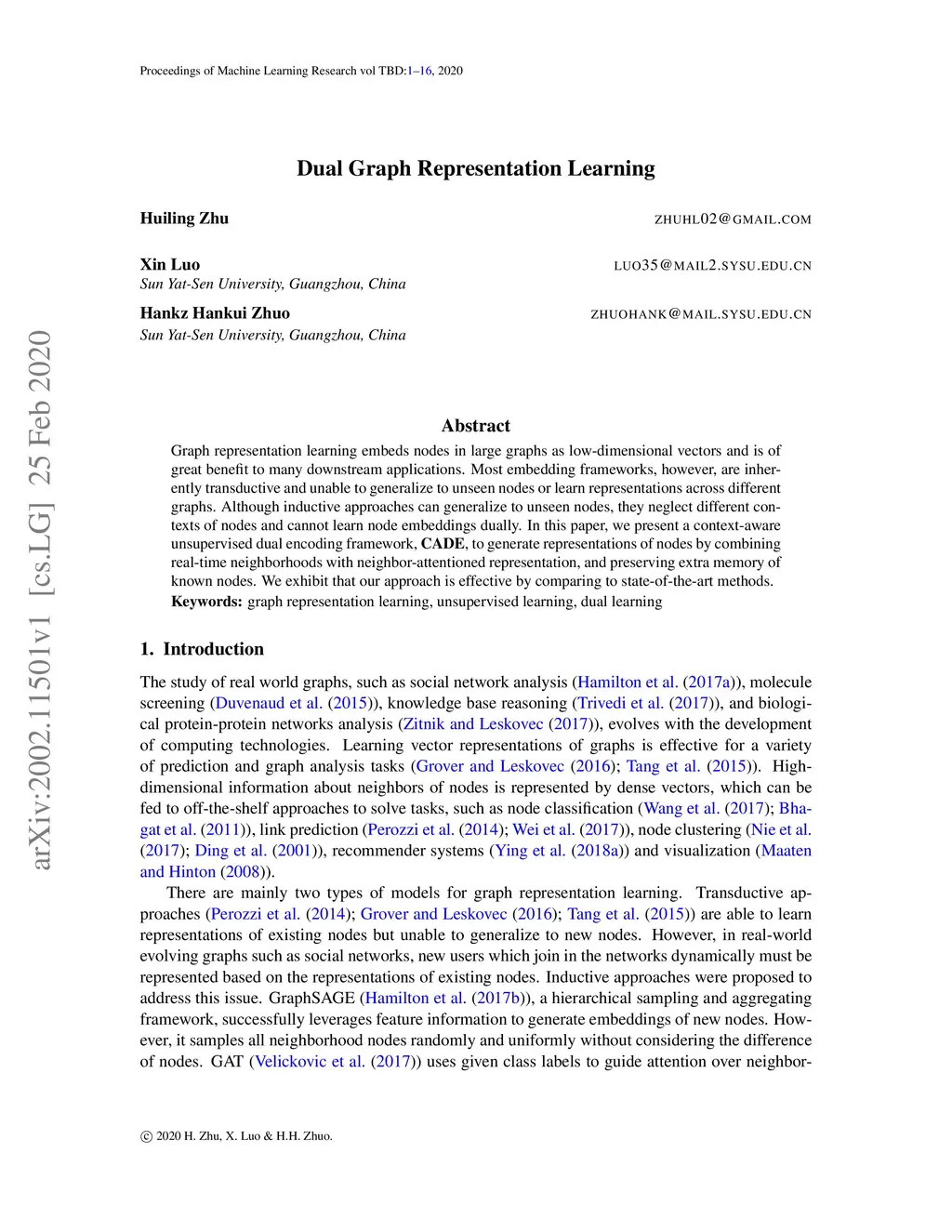 Dual Graph Representation Learning