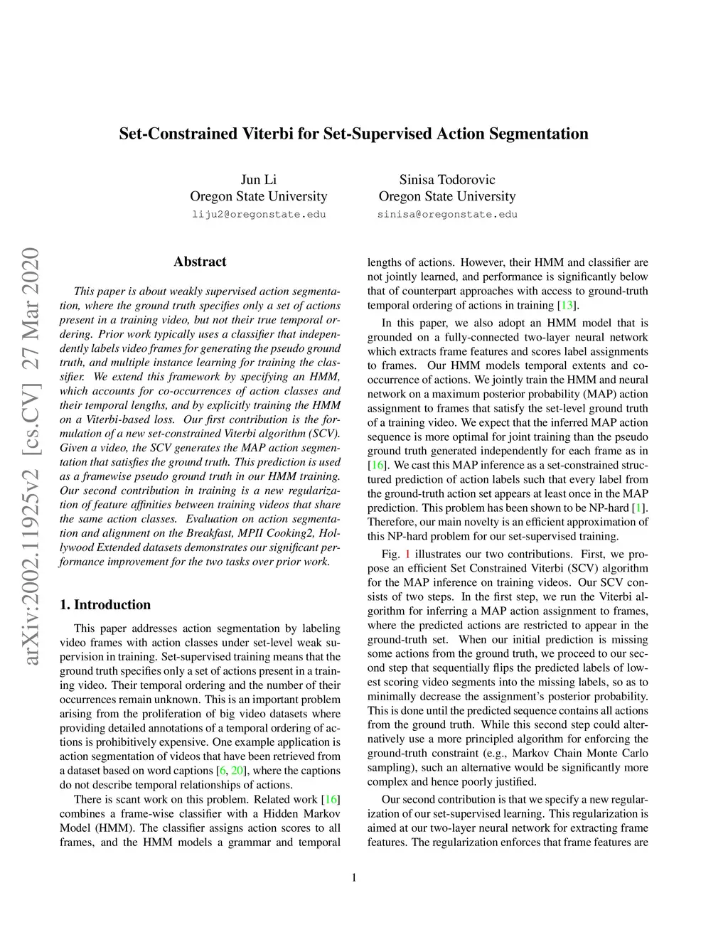 Set-Constrained Viterbi for Set-Supervised Action Segmentation