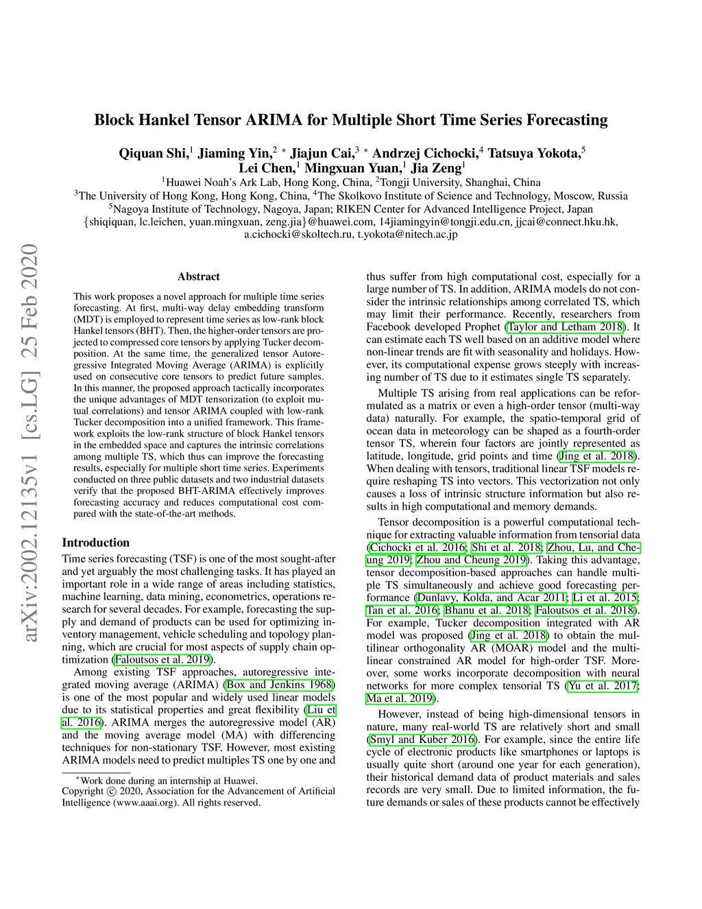 Block Hankel Tensor ARIMA for Multiple Short Time Series Forecasting
