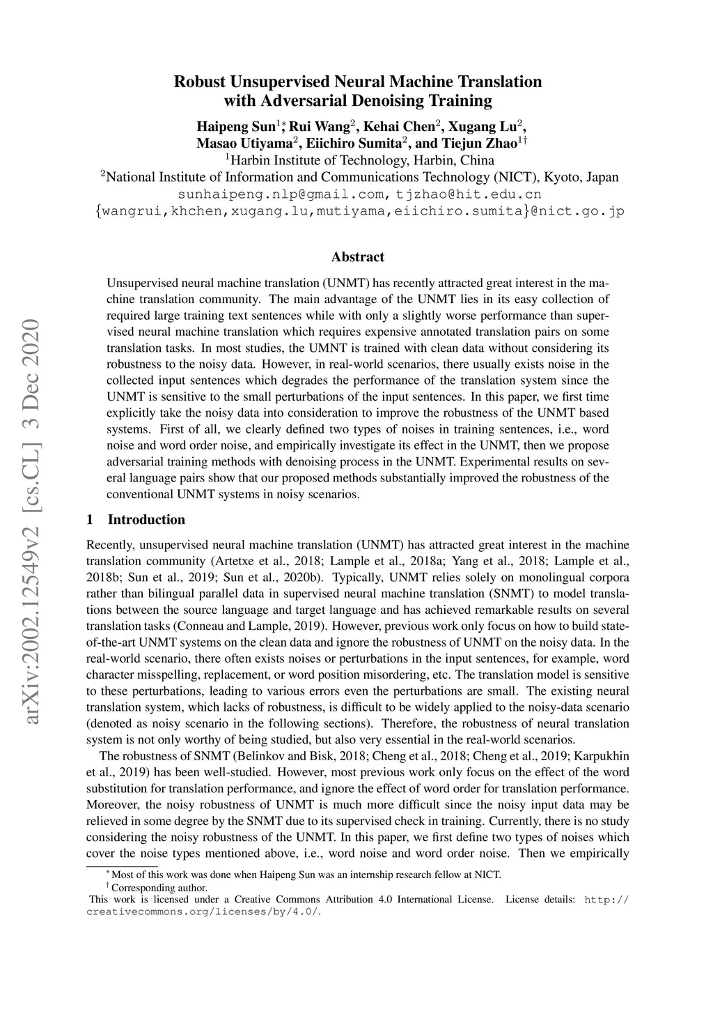 Robust Unsupervised Neural Machine Translation with Adversarial