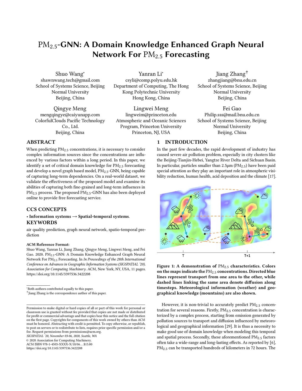 When predicting PM2.5 concentrations, it is necessary to consider complex information sources since the concentrations are influenced by various factors within a long period. In this paper, we identify a set of critical domain knowledge for PM2.5 forecasting and develop a novel graph based model, PM2.5-GNN, being capable of capturing long-term dependencies. On a real-world dataset, we validate the effectiveness of the proposed model and examine its abilities of capturing both fine-grained and long-term influences in PM2.5 process. The proposed PM2.5-GNN has also been deployed online to provide free forecasting service.
