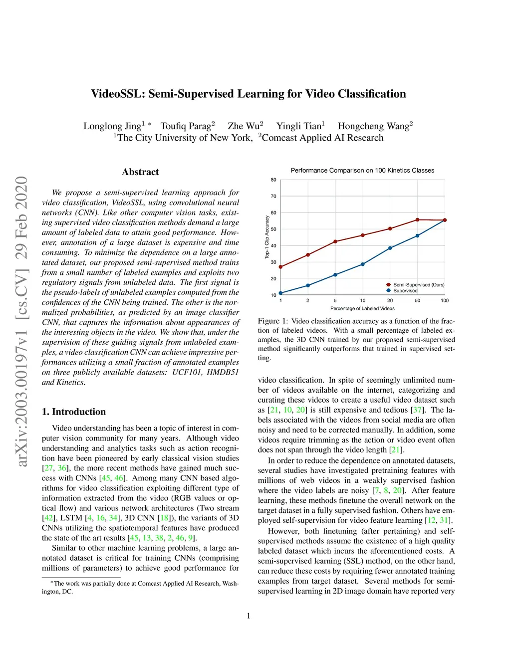 VideoSSL: Semi-Supervised Learning for Video Classification