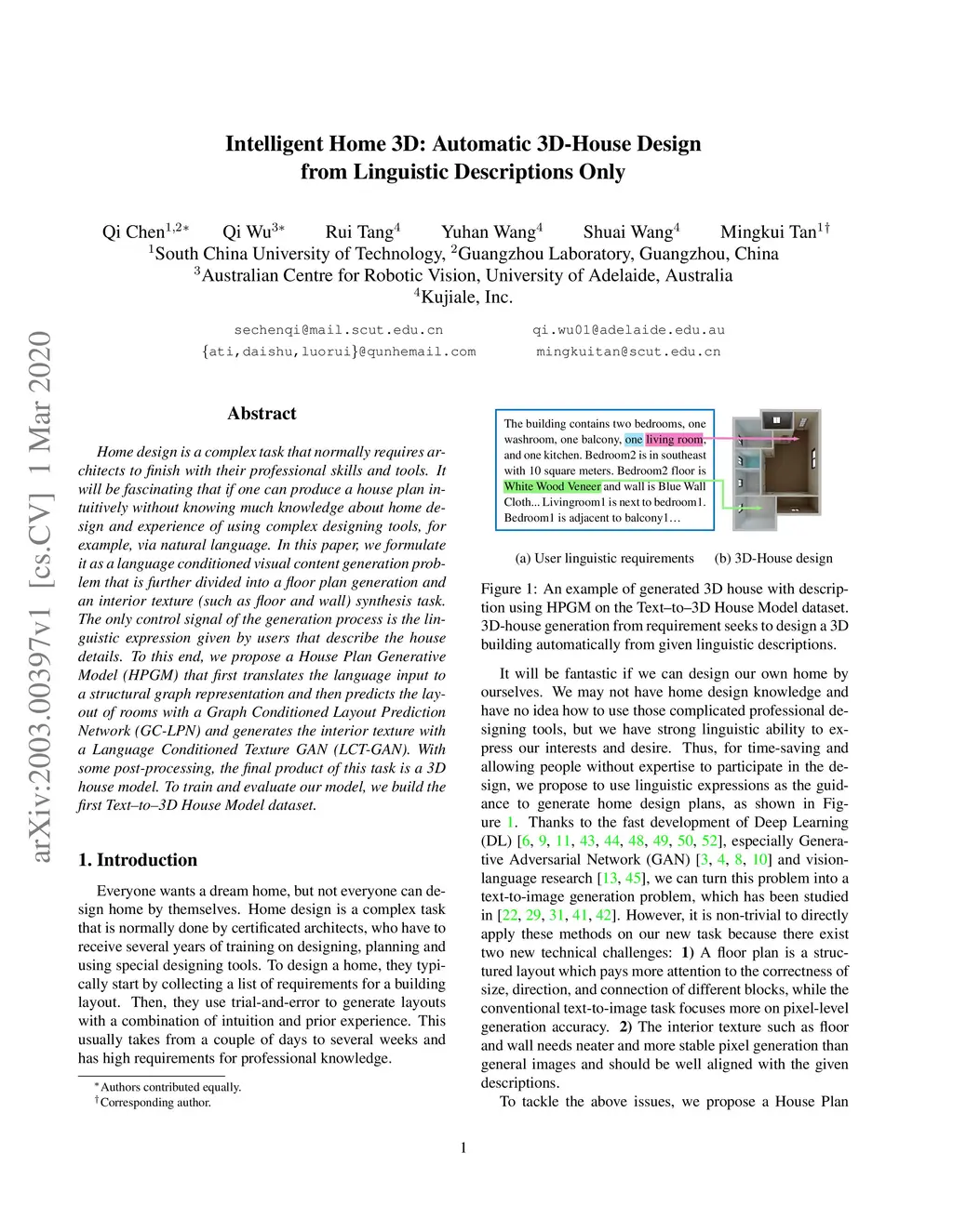 Intelligent Home 3D: Automatic 3D-House Design from Linguistic