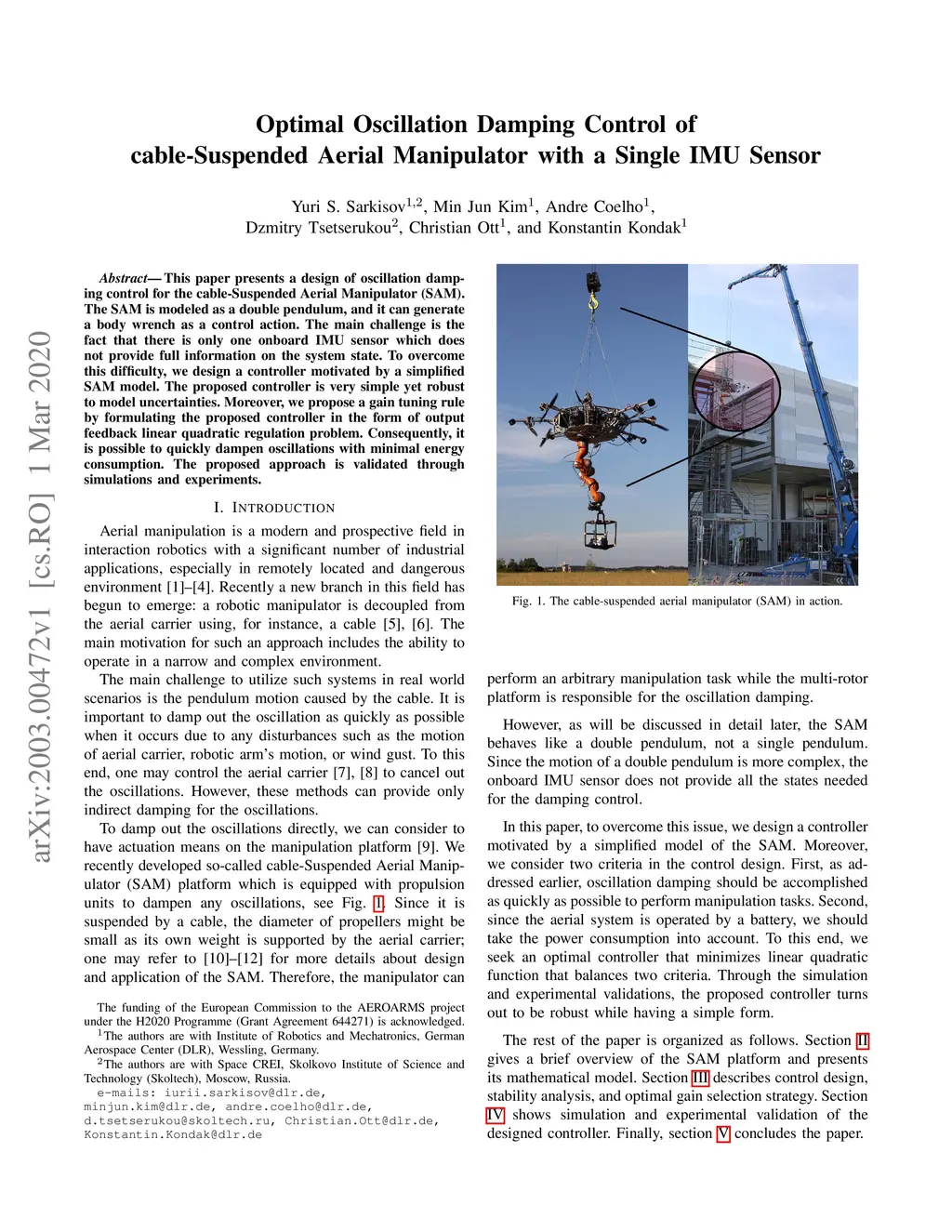 Optimal Oscillation Damping Control of cable-Suspended Aerial