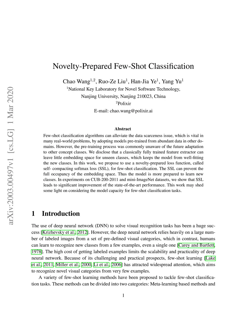 Few-shot classification algorithms can alleviate the data scarceness issue, which is vital in many real-world problems, by adopting models pre-trained from abundant data in other domains. However, the pre-training process was commonly unaware of the future adaptation to other concept classes. We disclose that a classically fully trained feature extractor can leave little embedding space for unseen classes, which keeps the model from well-fitting the new classes. In this work, we propose to use a novelty-prepared loss function, called self-compacting softmax loss (SSL), for few-shot classification. The SSL can prevent the full occupancy of the embedding space. Thus the model is more prepared to learn new classes. In experiments on CUB-200-2011 and mini-ImageNet datasets, we show that SSL leads to significant improvement of the state-of-the-art performance. This work may shed some light on considering the model capacity for few-shot classification tasks.