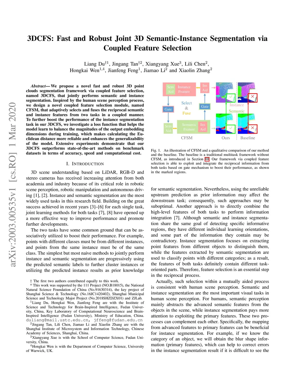 3DCFS: Fast and Robust Joint 3D Semantic-Instance Segmentation via