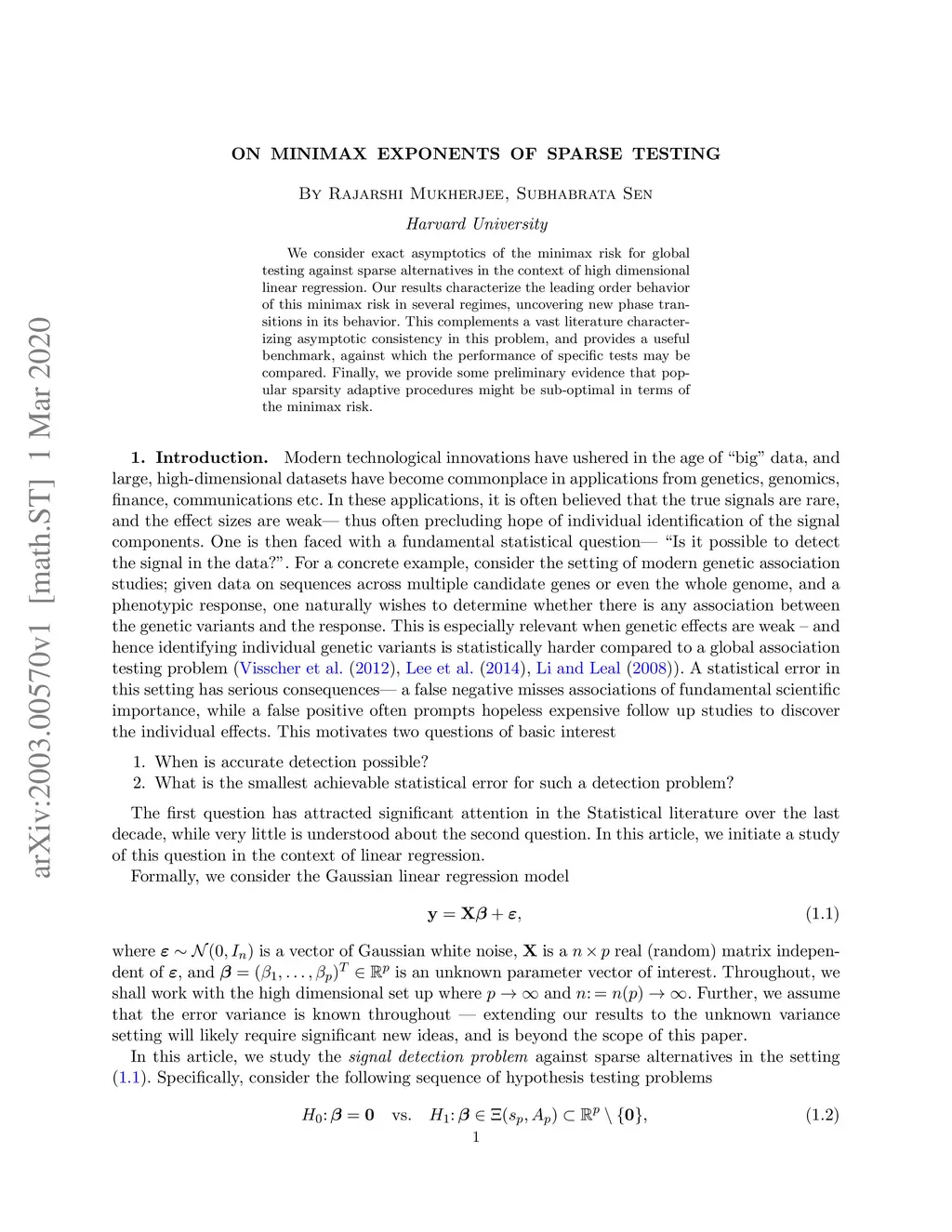 We consider exact asymptotics of the minimax risk for global testing against sparse alternatives in the context of high dimensional linear regression. Our results characterize the leading order behavior of this minimax risk in several regimes, uncovering new phase transitions in its behavior. This complements a vast literature characterizing asymptotic consistency in this problem, and provides a useful benchmark, against which the performance of specific tests may be compared. Finally, we provide some preliminary evidence that popular sparsity adaptive procedures might be sub-optimal in terms of the minimax risk.