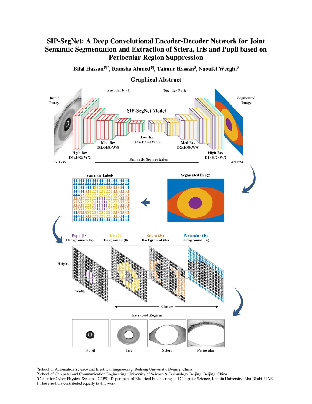 Semantic Segmentation and Extraction of Sclera, Iris and Pupil based on