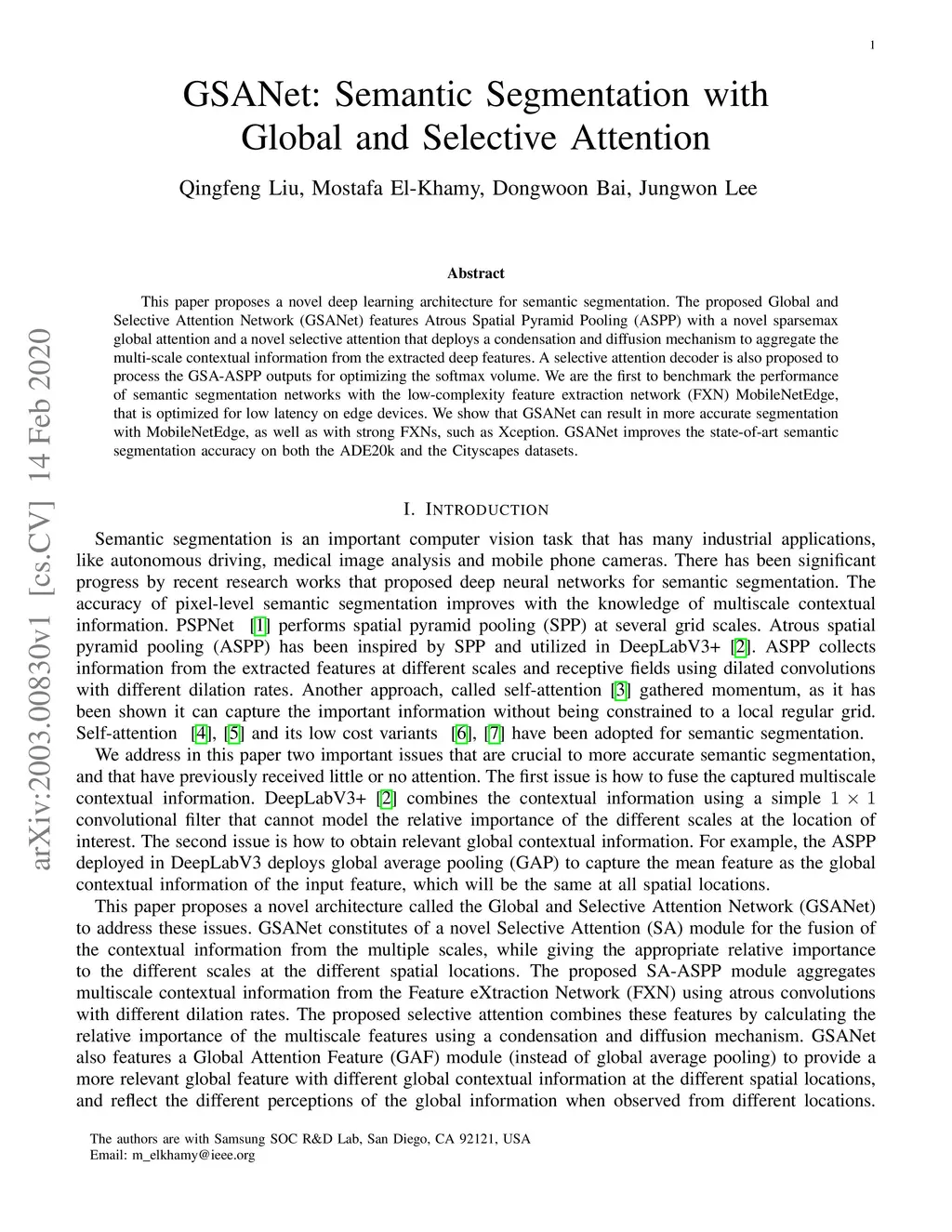 GSANet: Semantic Segmentation with Global and Selective Attention
