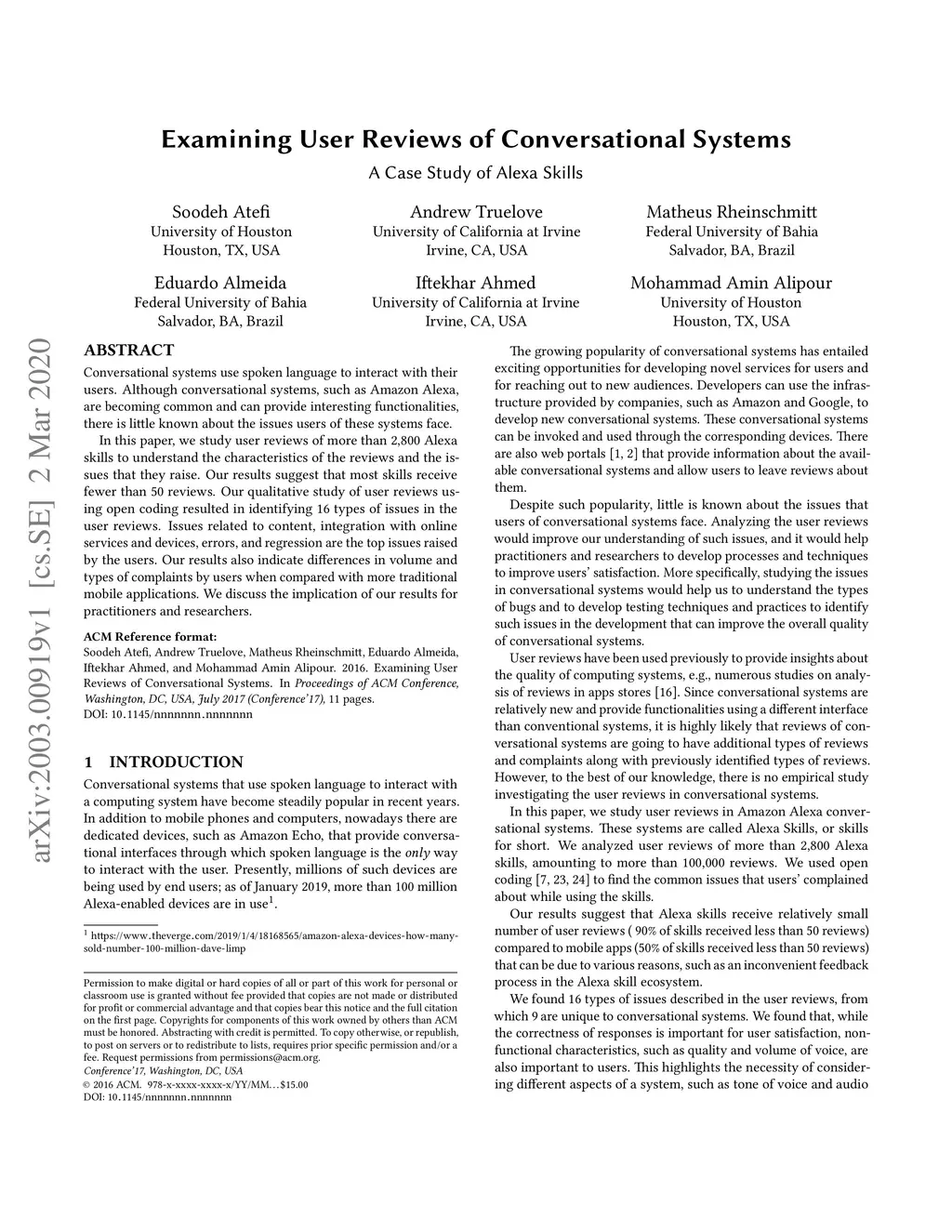 Examining user reviews of conversational systems: a case study of Alexa