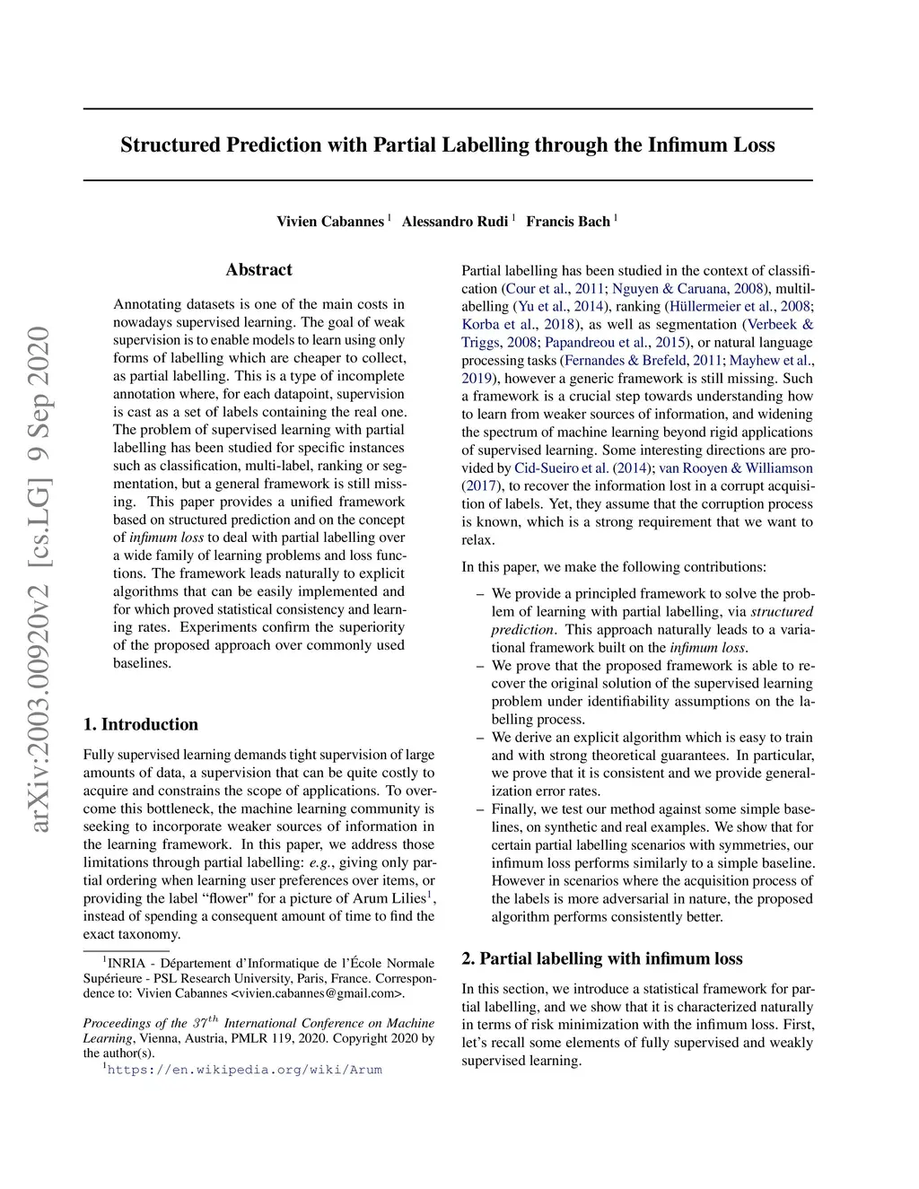 Structured Prediction with Partial Labelling through the Infimum Loss