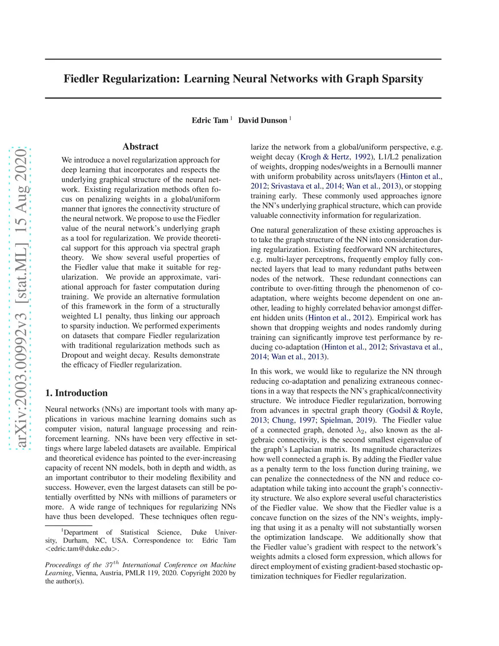 Fiedler Regularization: Learning Neural Networks with Graph Sparsity