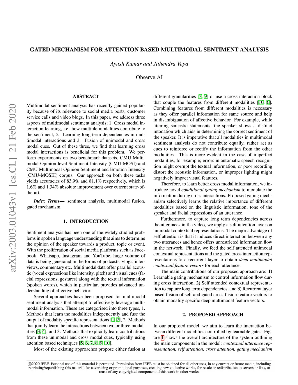 Gated Mechanism for Attention Based Multimodal Sentiment Analysis