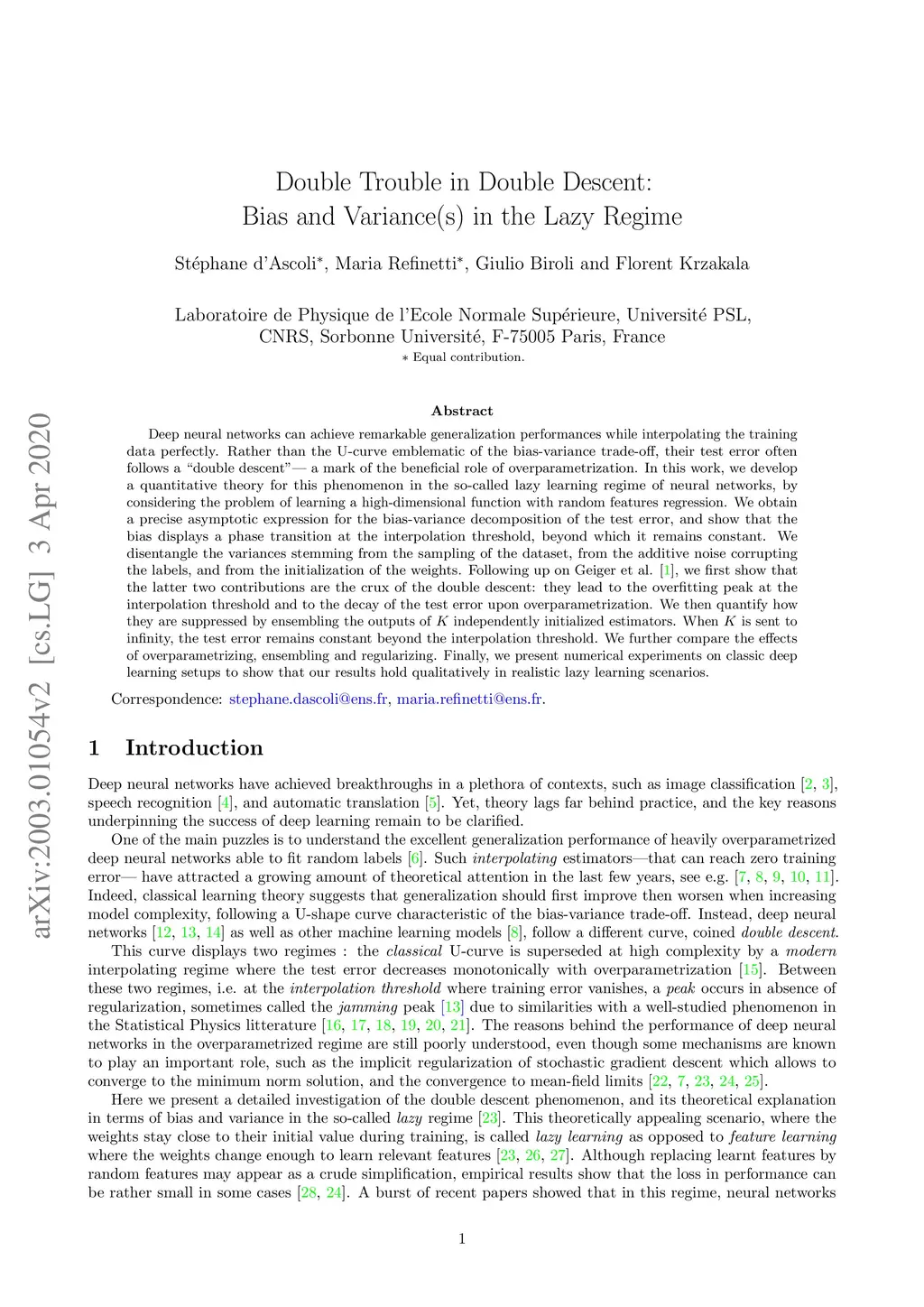 Double Trouble in Double Descent : Bias and Variance(s) in the Lazy