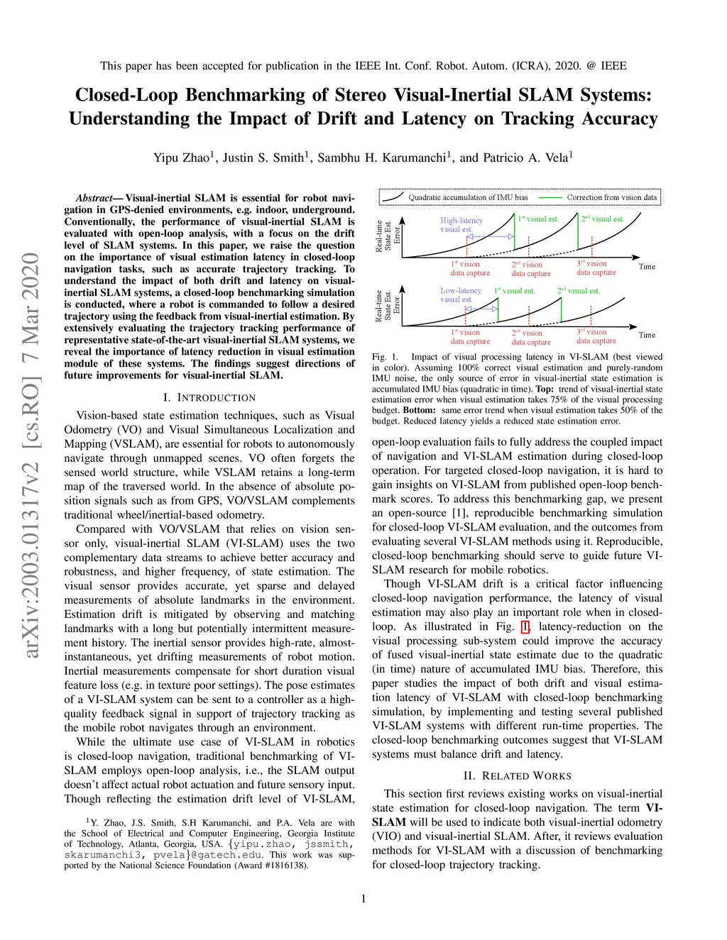 Visual-inertial SLAM is essential for robot navigation in GPS-denied environments, e.g. indoor, underground. Conventionally, the performance of visual-inertial SLAM is evaluated with open-loop analysis, with a focus on the drift level of SLAM systems. In this paper, we raise the question on the importance of visual estimation latency in closed-loop navigation tasks, such as accurate trajectory tracking. To understand the impact of both drift and latency on visual-inertial SLAM systems, a closed-loop benchmarking simulation is conducted, where a robot is commanded to follow a desired trajectory using the feedback from visual-inertial estimation. By extensively evaluating the trajectory tracking performance of representative state-of-the-art visual-inertial SLAM systems, we reveal the importance of latency reduction in visual estimation module of these systems. The findings suggest directions of future improvements for visual-inertial SLAM.