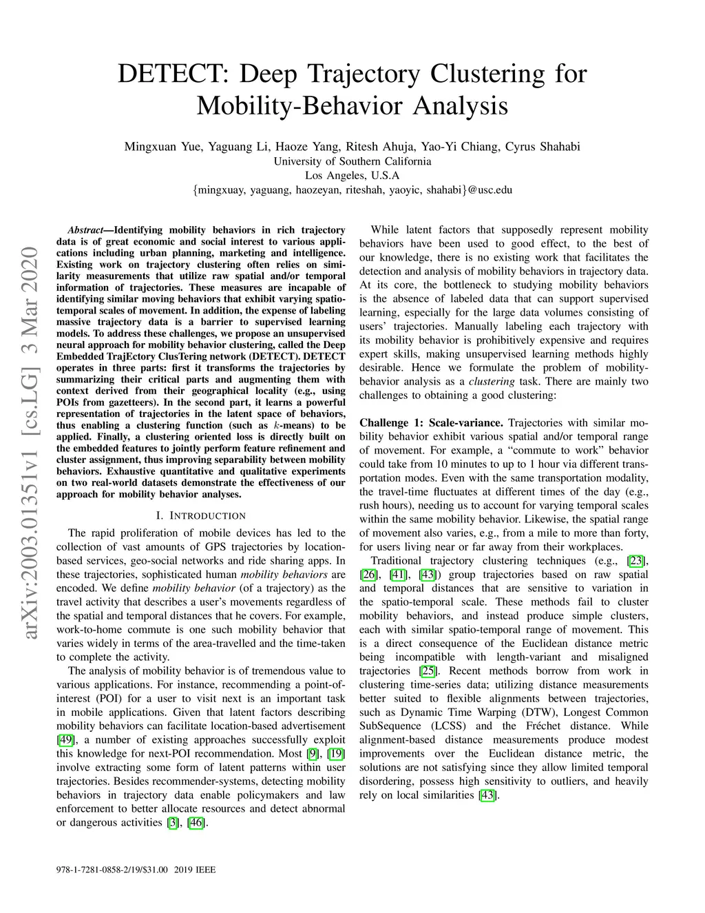 DETECT: Deep Trajectory Clustering for Mobility-Behavior Analysis