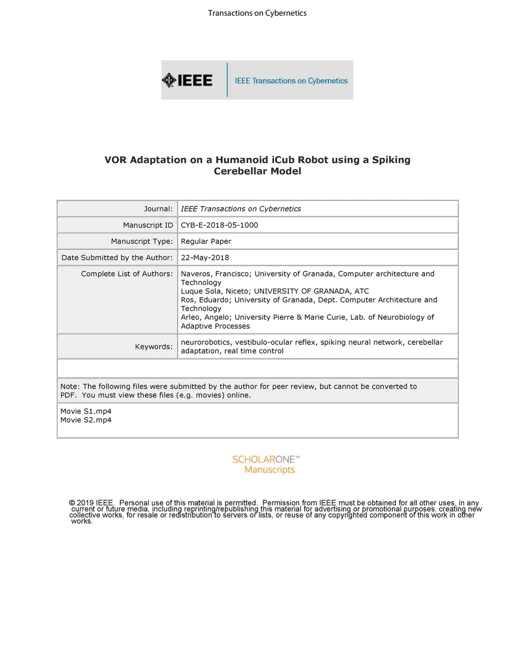 VOR Adaptation on a Humanoid iCub Robot Using a Spiking Cerebellar Model