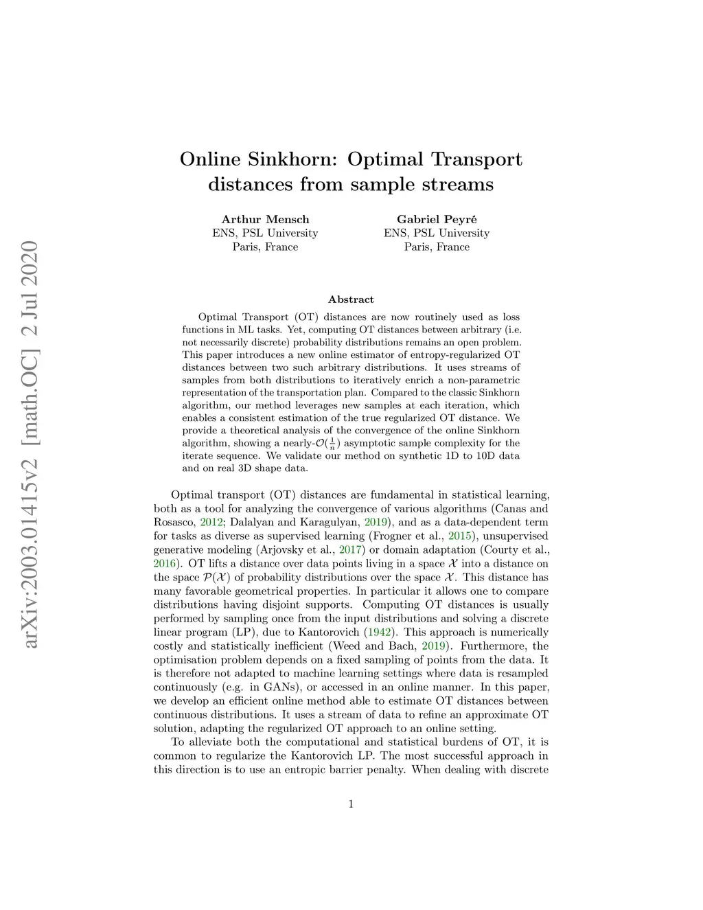 Online Sinkhorn: Optimal Transport distances from sample streams