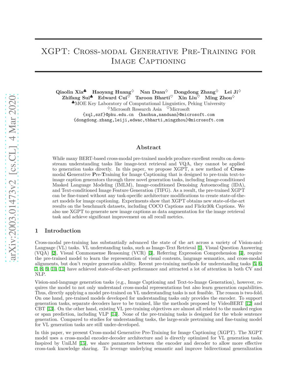 XGPT: Cross-modal Generative Pre-Training for Image Captioning