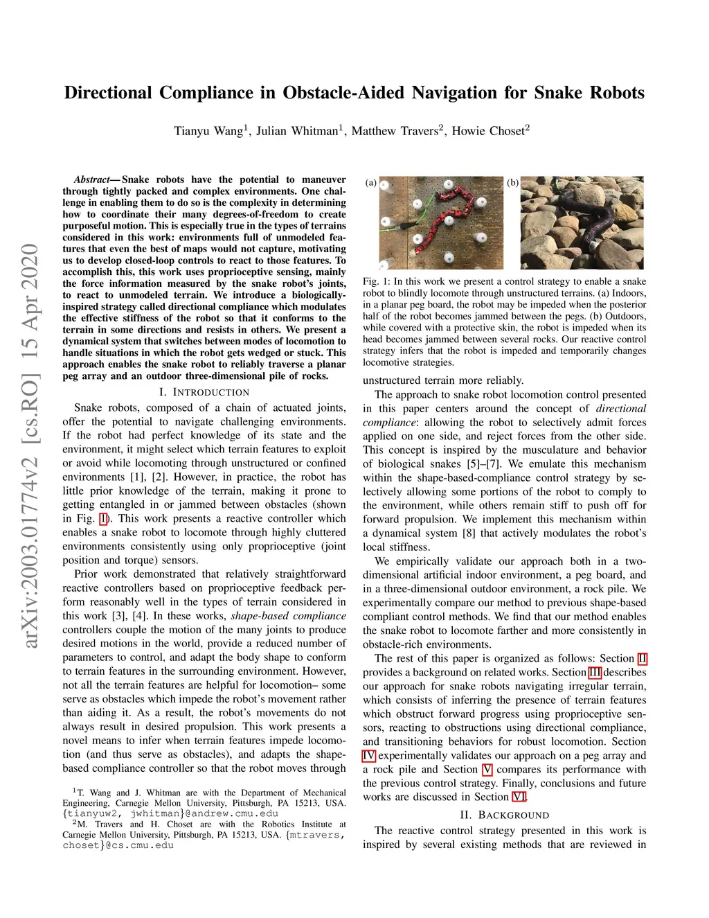 Directional Compliance in Obstacle-Aided Navigation for Snake Robots