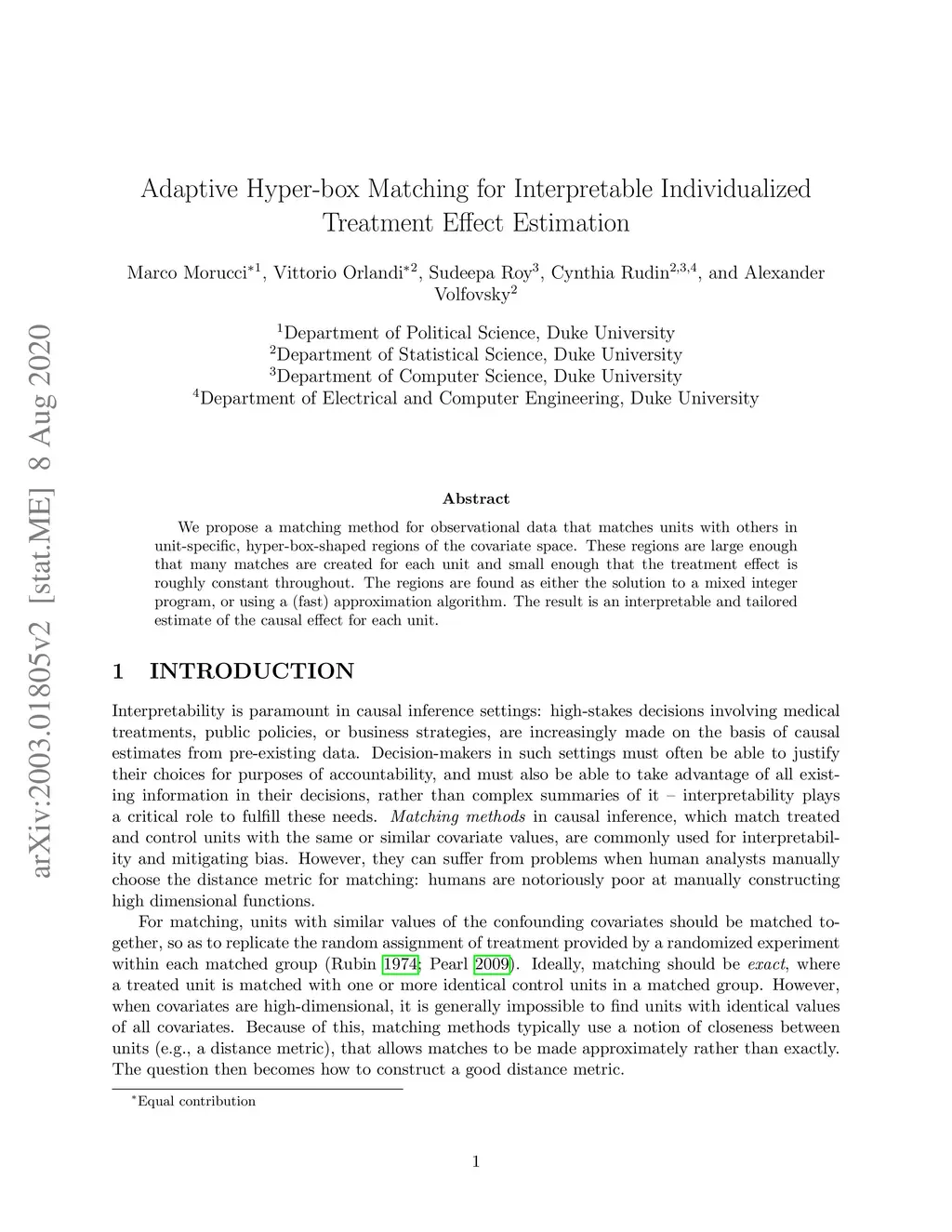 We propose a matching method for observational data that matches units with others in unit-specific, hyper-box-shaped regions of the covariate space. These regions are large enough that many matches are created for each unit and small enough that the treatment effect is roughly constant throughout. The regions are found as either the solution to a mixed integer program, or using a (fast) approximation algorithm. The result is an interpretable and tailored estimate of a causal effect for each unit.