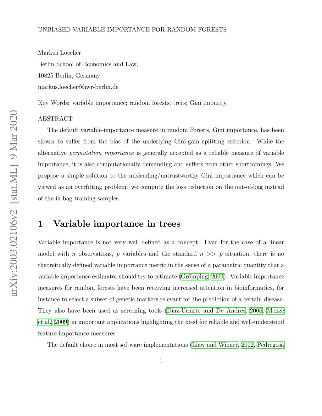 The default variable-importance measure in random Forests, Gini importance, has been shown to suffer from the bias of the underlying Gini-gain splitting criterion. While the alternative permutation importance is generally accepted as a reliable measure of variable importance, it is also computationally demanding and suffers from other shortcomings. We propose a simple solution to the misleading/untrustworthy Gini importance which can be viewed as an overfitting problem: we compute the loss reduction on the out-of-bag instead of the in-bag training samples.