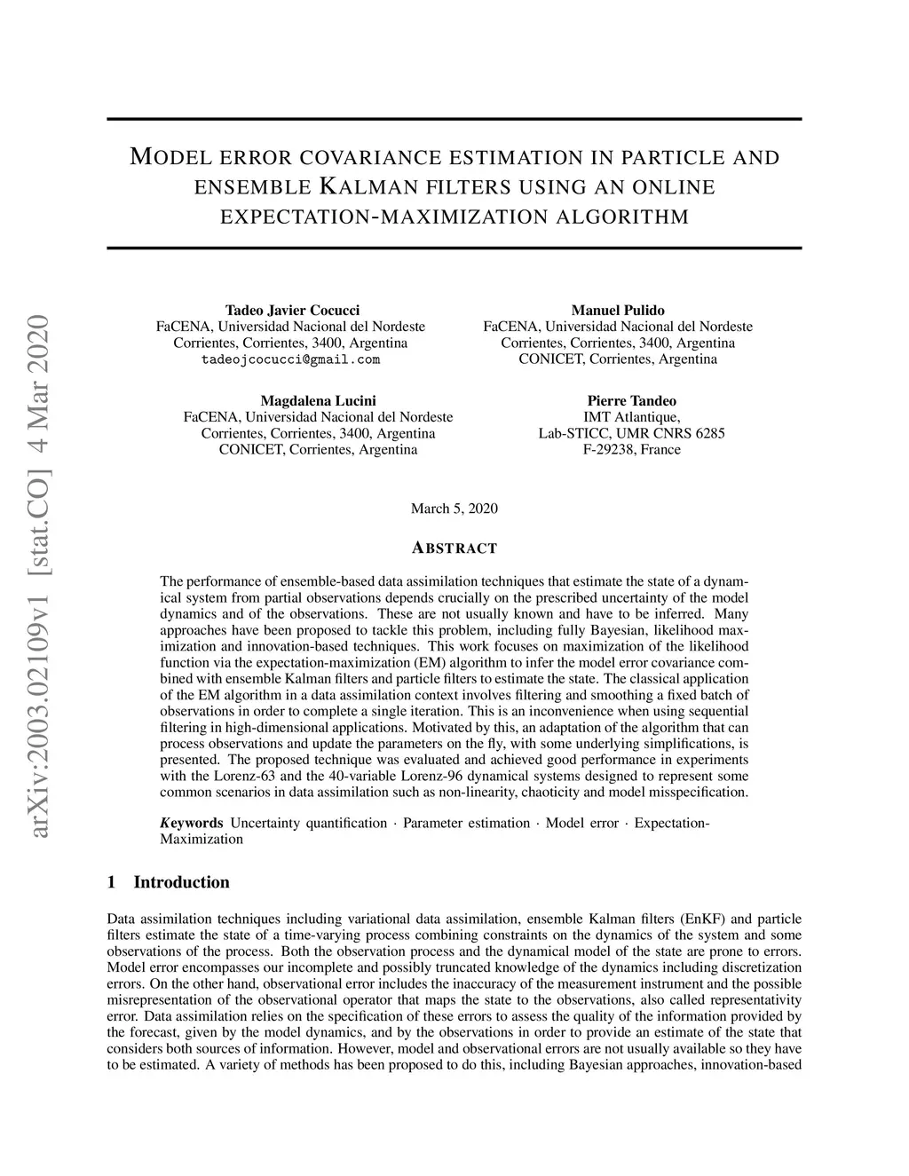 filters using an online expectation-maximization algorithm