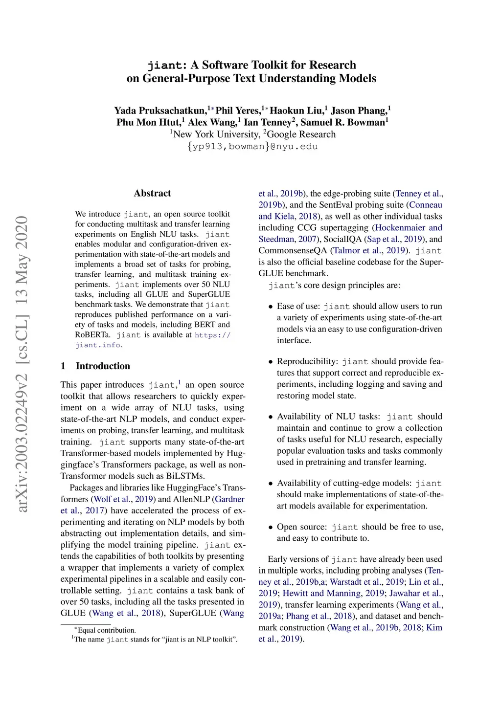 jiant: A Software Toolkit for Research on General-Purpose Text