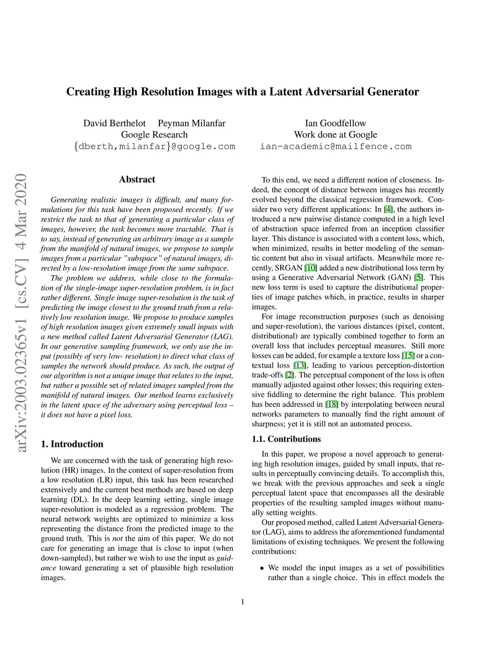 Creating High Resolution Images with a Latent Adversarial Generator