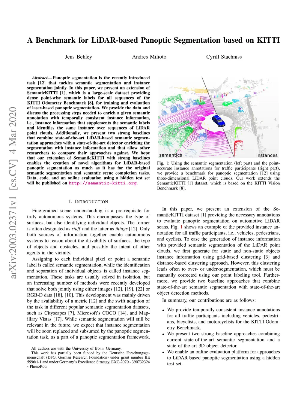 A Benchmark for LiDAR-based Panoptic Segmentation based on KITTI