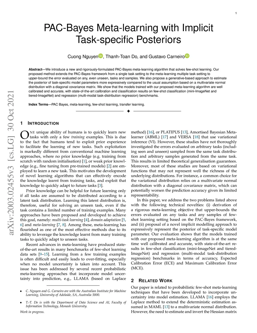 PAC-Bayes meta-learning with implicit task-specific posteriors