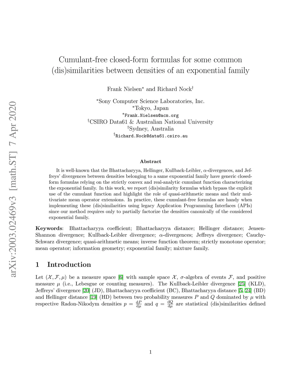 Cumulant-free closed-form formulas for some common (dis)similarities
