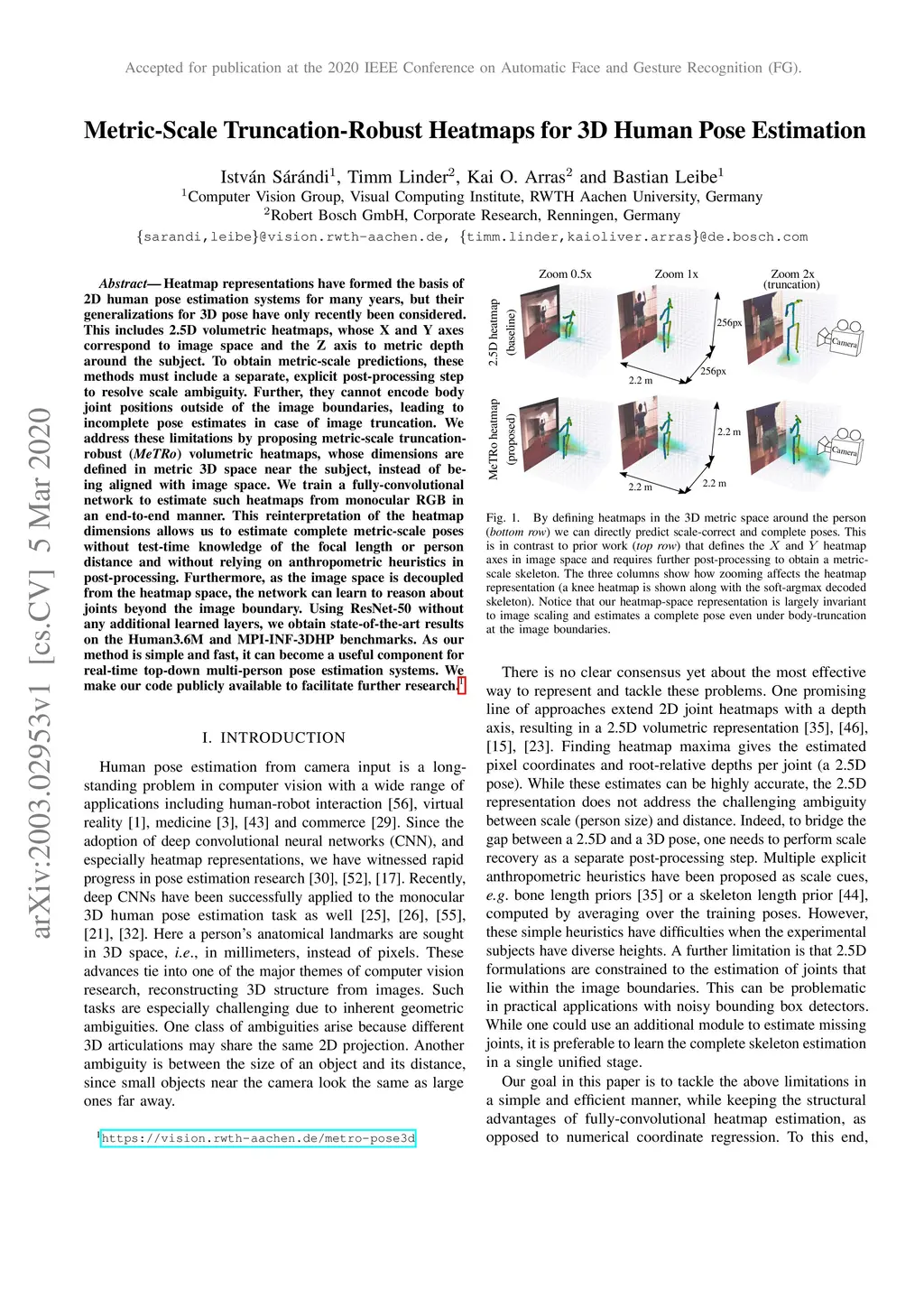 Metric-Scale Truncation-Robust Heatmaps for 3D Human Pose Estimation