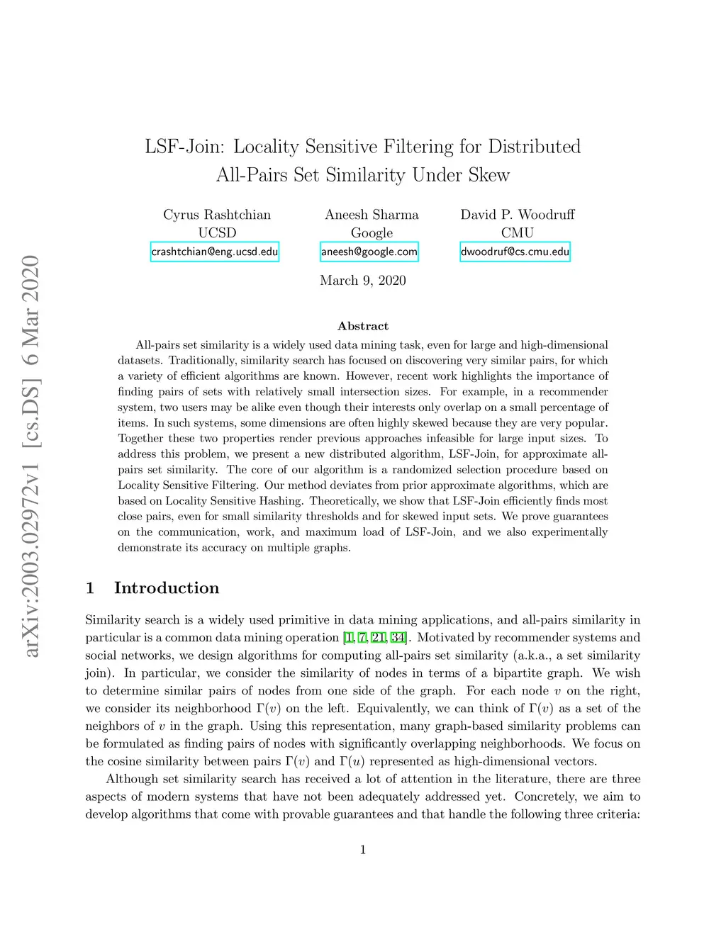 LSF-Join: Locality Sensitive Filtering for Distributed All-Pairs Set