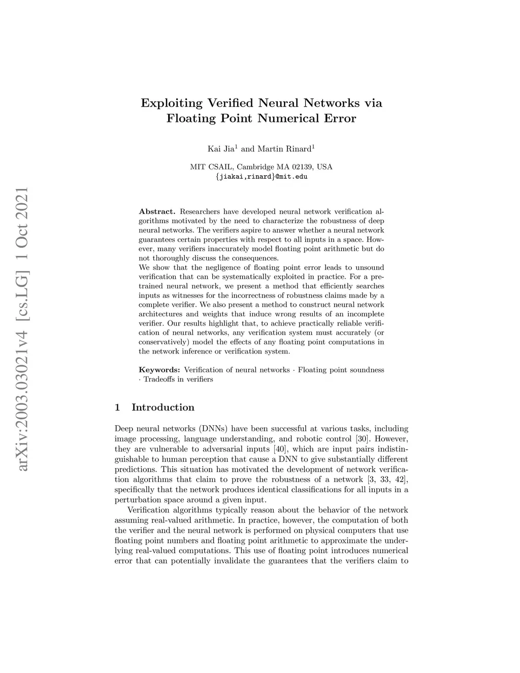 Exploiting Verified Neural Networks via Floating Point Numerical Error