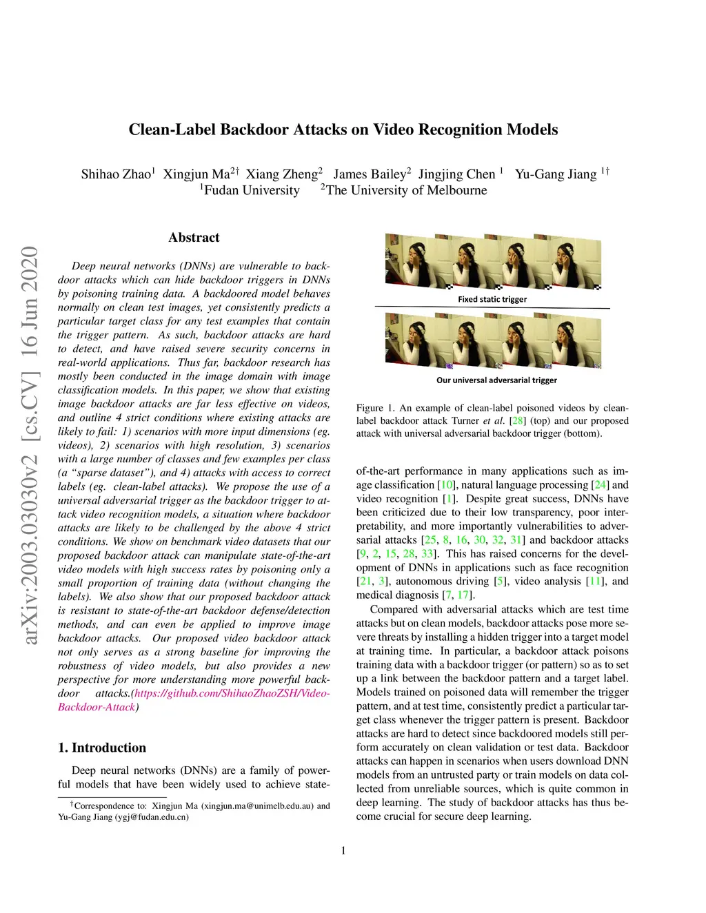 Clean-Label Backdoor Attacks on Video Recognition Models