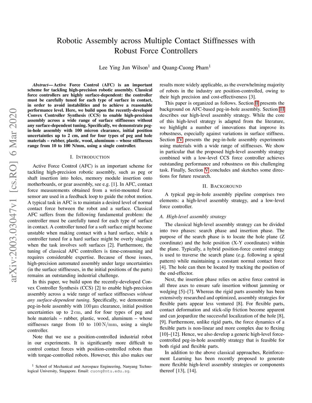 Robotic Assembly across Multiple Contact Stiffnesses with Robust Force