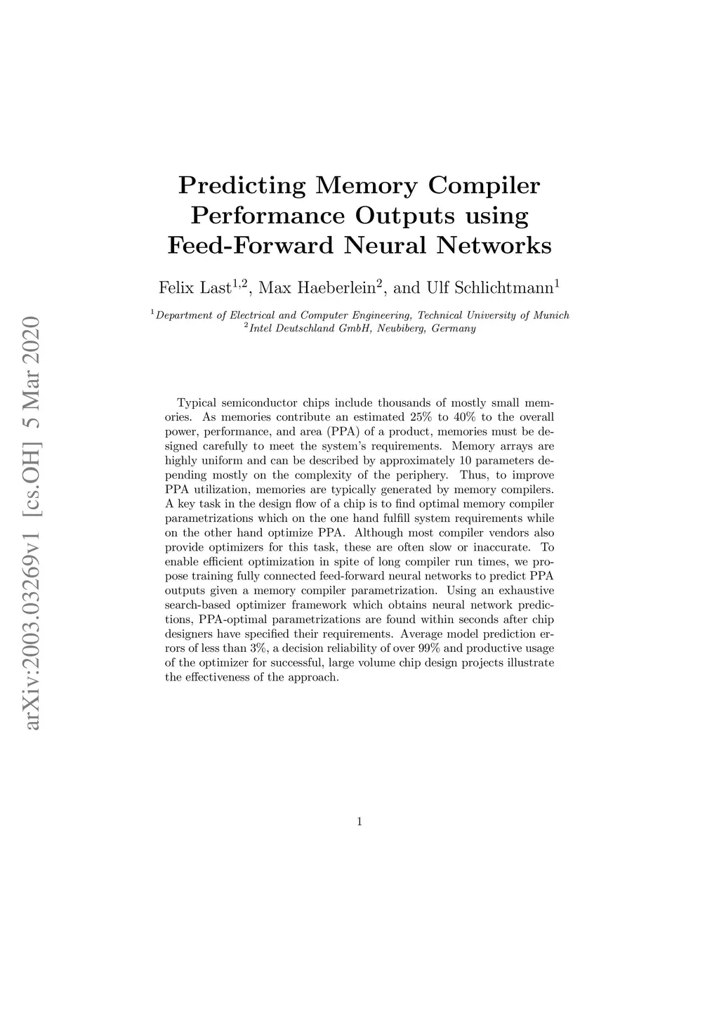 Predicting Memory Compiler Performance Outputs using Feed-Forward Neural
