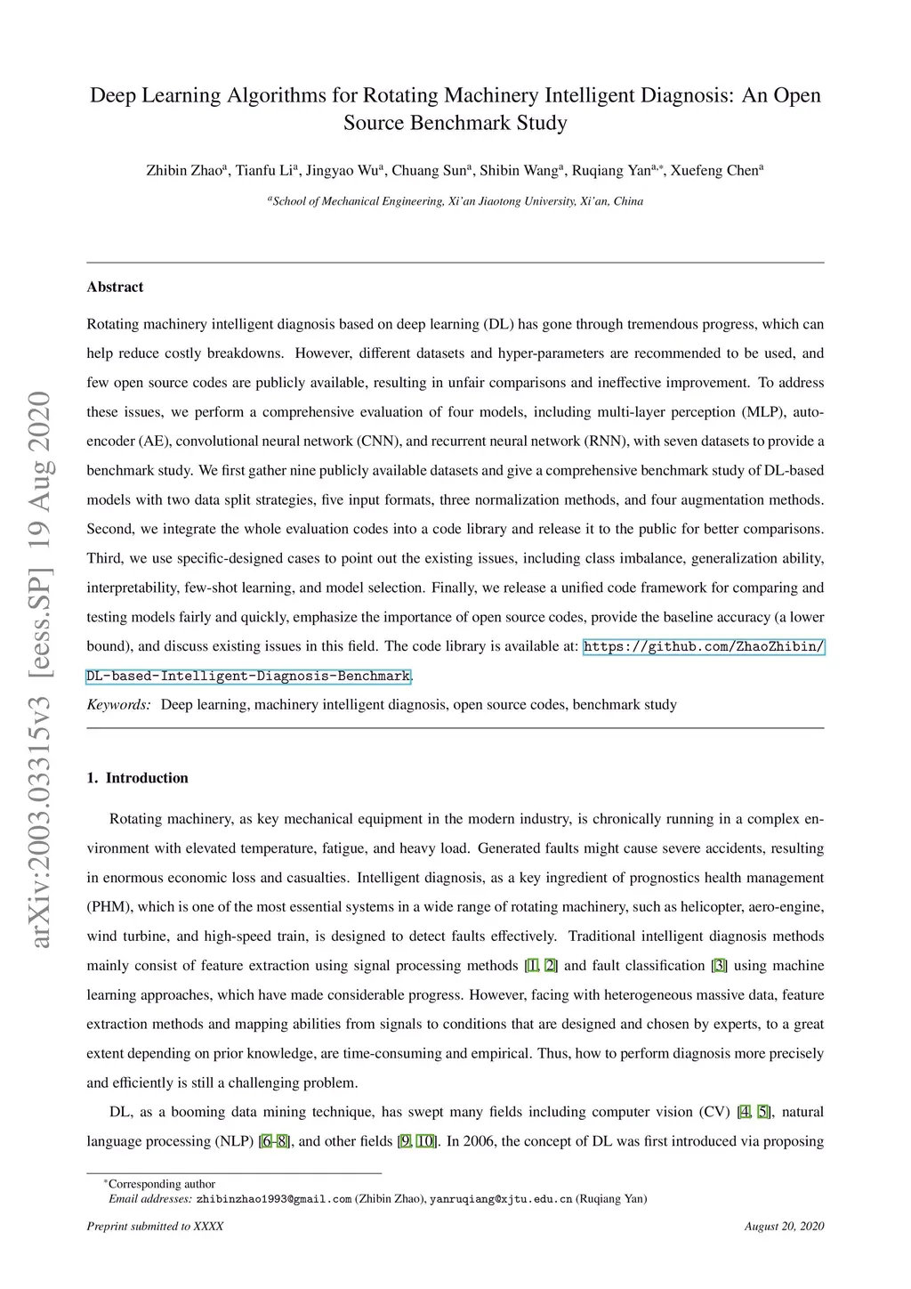 Deep Learning Algorithms for Rotating Machinery Intelligent Diagnosis: