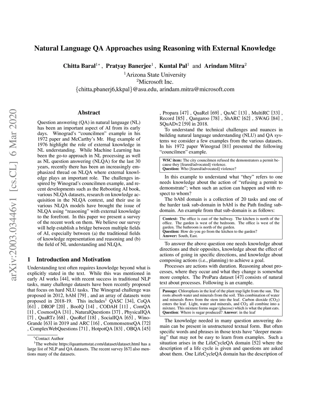 Natural Language QA Approaches using Reasoning with External Knowledge