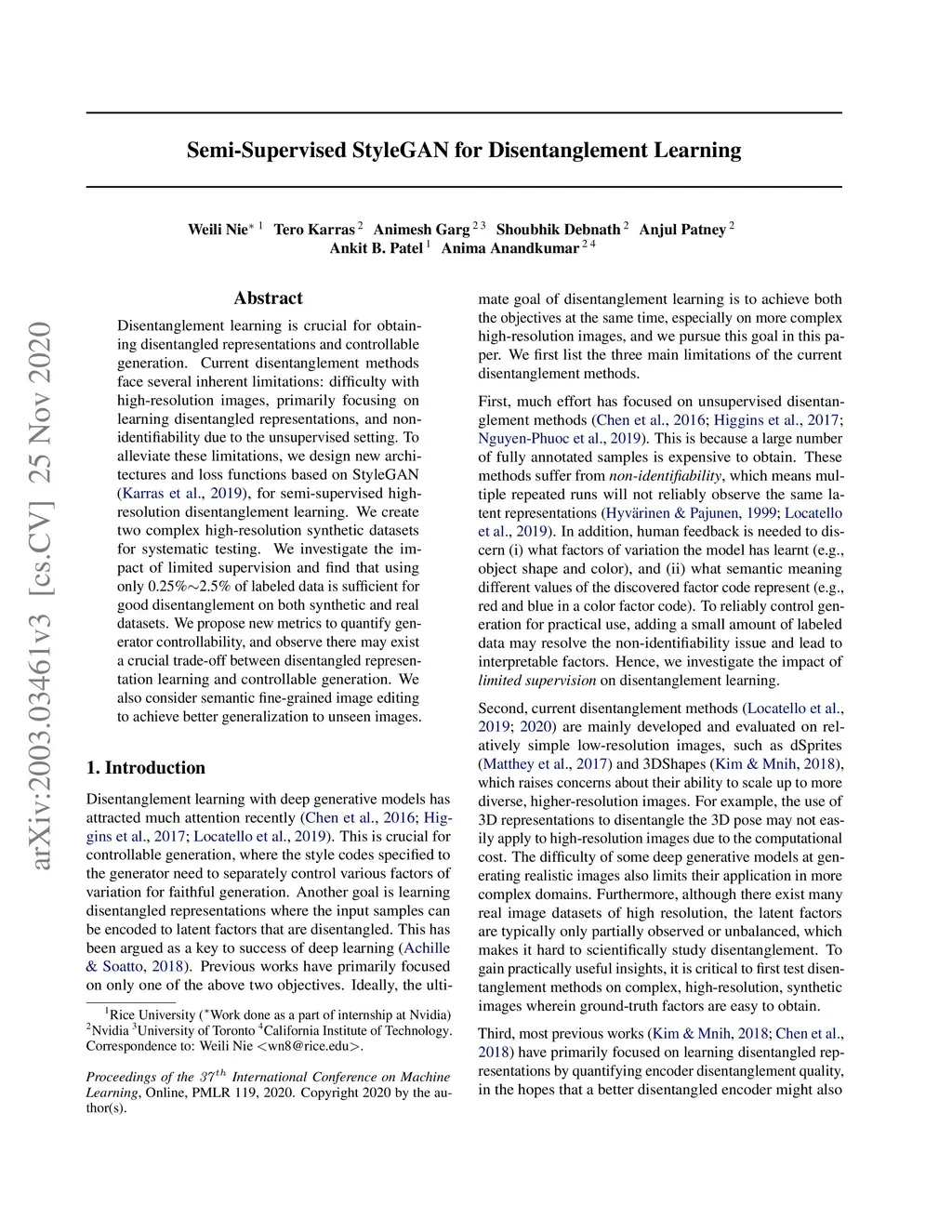 Semi-Supervised StyleGAN for Disentanglement Learning