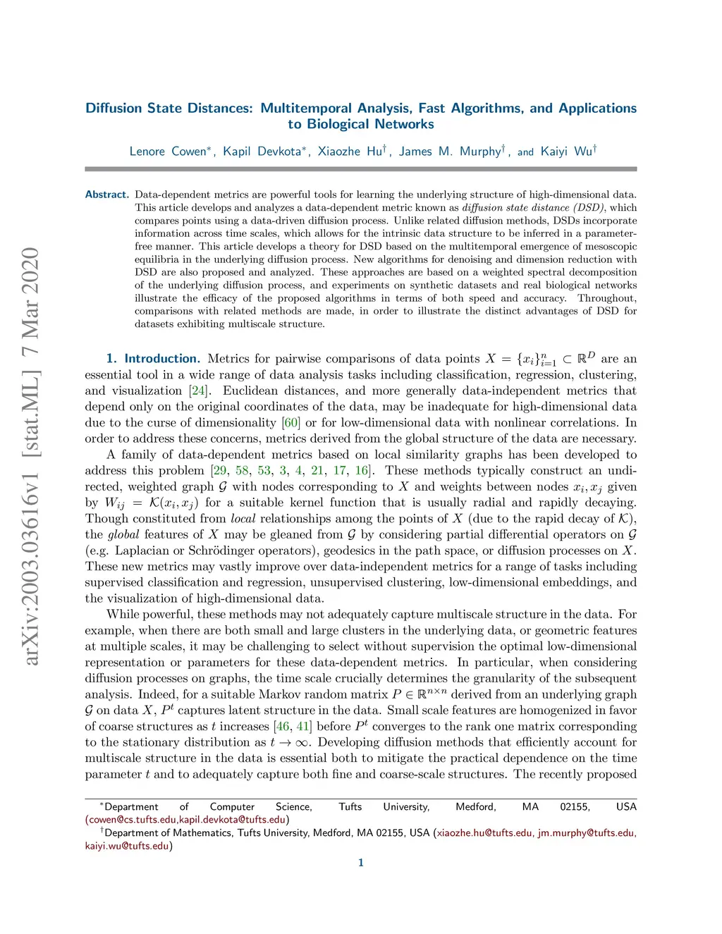 Diffusion State Distances: Multitemporal Analysis, Fast Algorithms, and