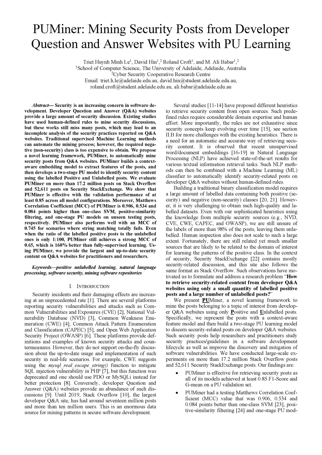 PUMiner: Mining Security Posts from Developer Question and Answer