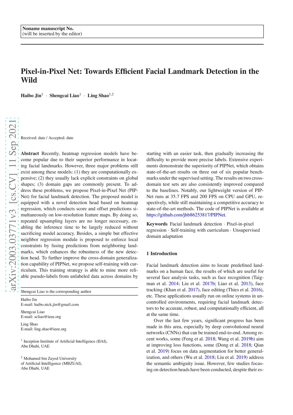 Recently, heatmap regression models have become popular due to their superior performance in locating facial landmarks. However, three major problems still exist among these models: (1) they are computationally expensive; (2) they usually lack explicit constraints on global shapes; (3) domain gaps are commonly present. To address these problems, we propose Pixel-in-Pixel Net (PIPNet) for facial landmark detection. The proposed model is equipped with a novel detection head based on heatmap regression, which conducts score and offset predictions simultaneously on low-resolution feature maps. By doing so, repeated upsampling layers are no longer necessary, enabling the inference time to be largely reduced without sacrificing model accuracy. Besides, a simple but effective neighbor regression module is proposed to enforce local constraints by fusing predictions from neighboring landmarks, which enhances the robustness of the new detection head. To further improve the cross-domain generalization capability of PIPNet, we propose self-training with curriculum. This training strategy is able to mine more reliable pseudo-labels from unlabeled data across domains by starting with an easier task, then gradually increasing the difficulty to provide more precise labels. Extensive experiments demonstrate the superiority of PIPNet, which obtains state-of-the-art results on three out of six popular benchmarks under the supervised setting. The results on two cross-domain test sets are also consistently improved compared to the baselines. Notably, our lightweight version of PIPNet runs at 35.7 FPS and 200 FPS on CPU and GPU, respectively, while still maintaining a competitive accuracy to state-of-the-art methods. The code of PIPNet is available at https://github.com/jhb86253817/PIPNet.