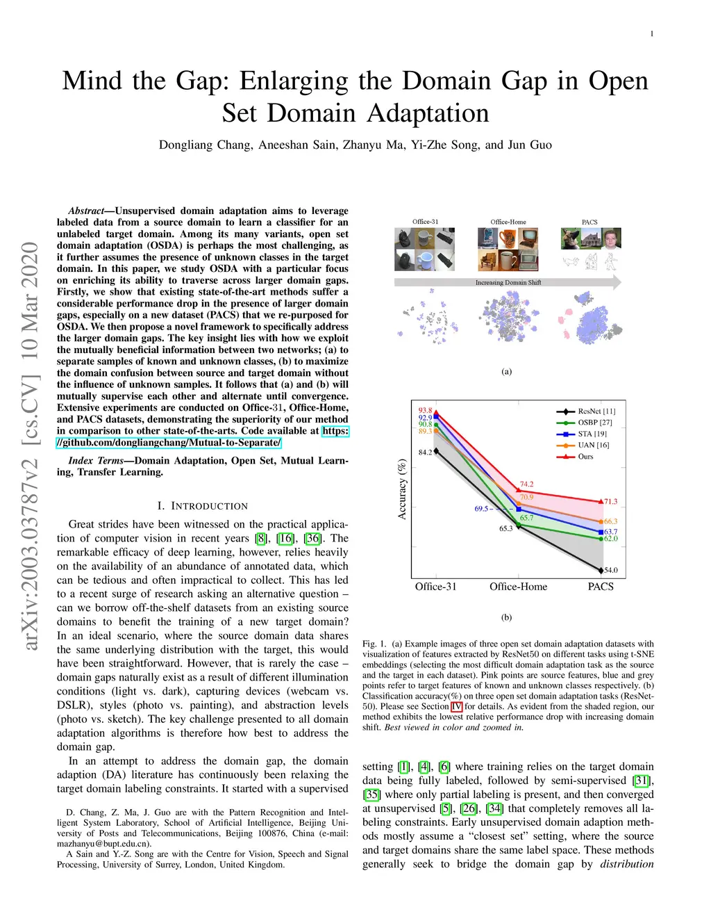 Unsupervised domain adaptation aims to leverage labeled data from a source domain to learn a classifier for an unlabeled target domain. Among its many variants, open set domain adaptation (OSDA) is perhaps the most challenging, as it further assumes the presence of unknown classes in the target domain. In this paper, we study OSDA with a particular focus on enriching its ability to traverse across larger domain gaps. Firstly, we show that existing state-of-the-art methods suffer a considerable performance drop in the presence of larger domain gaps, especially on a new dataset (PACS) that we re-purposed for OSDA. We then propose a novel framework to specifically address the larger domain gaps. The key insight lies with how we exploit the mutually beneficial information between two networks; (a) to separate samples of known and unknown classes, (b) to maximize the domain confusion between source and target domain without the influence of unknown samples. It follows that (a) and (b) will mutually supervise each other and alternate until convergence. Extensive experiments are conducted on Office-31, Office-Home, and PACS datasets, demonstrating the superiority of our method in comparison to other state-of-the-arts. Code available at https://github.com/dongliangchang/Mutual-to-Separate/