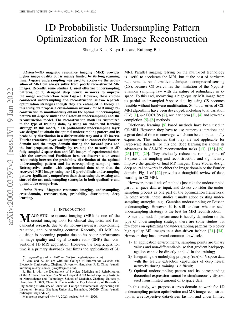 1D Probabilistic Undersampling Pattern Optimization for MR Image