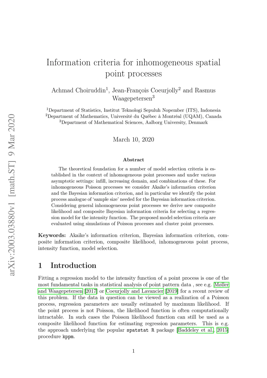 The theoretical foundation for a number of model selection criteria is established in the context of inhomogeneous point processes and under various asymptotic settings: infill, increasing domain, and combinations of these. For inhomogeneous Poisson processes we consider Akaike information criterion and the Bayesian information criterion, and in particular we identify the point process analogue of sample size needed for the Bayesian information criterion. Considering general inhomogeneous point processes we derive new composite likelihood and composite Bayesian information criteria for selecting a regression model for the intensity function. The proposed model selection criteria are evaluated using simulations of Poisson processes and cluster point processes.