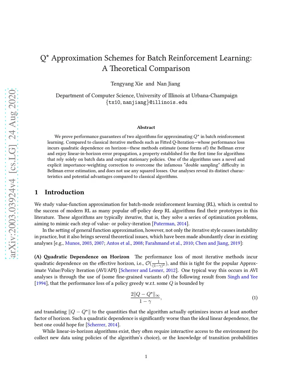 Q* Approximation Schemes for Batch Reinforcement Learning: A Theoretical